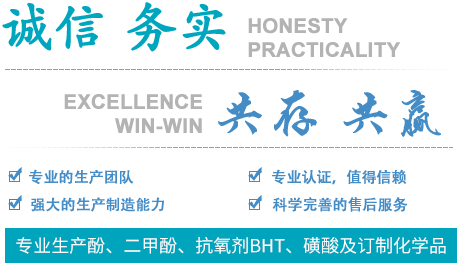 專(zhuān)業(yè)生產(chǎn)對(duì),苯磺酸,苯酚磺酸等磺酸類(lèi)產(chǎn)品及抗氧劑的生產(chǎn):如抗氧劑300,抗氧劑BHT等;酚類(lèi)產(chǎn)品有間苯二酚、鄰甲酚及間甲酚等